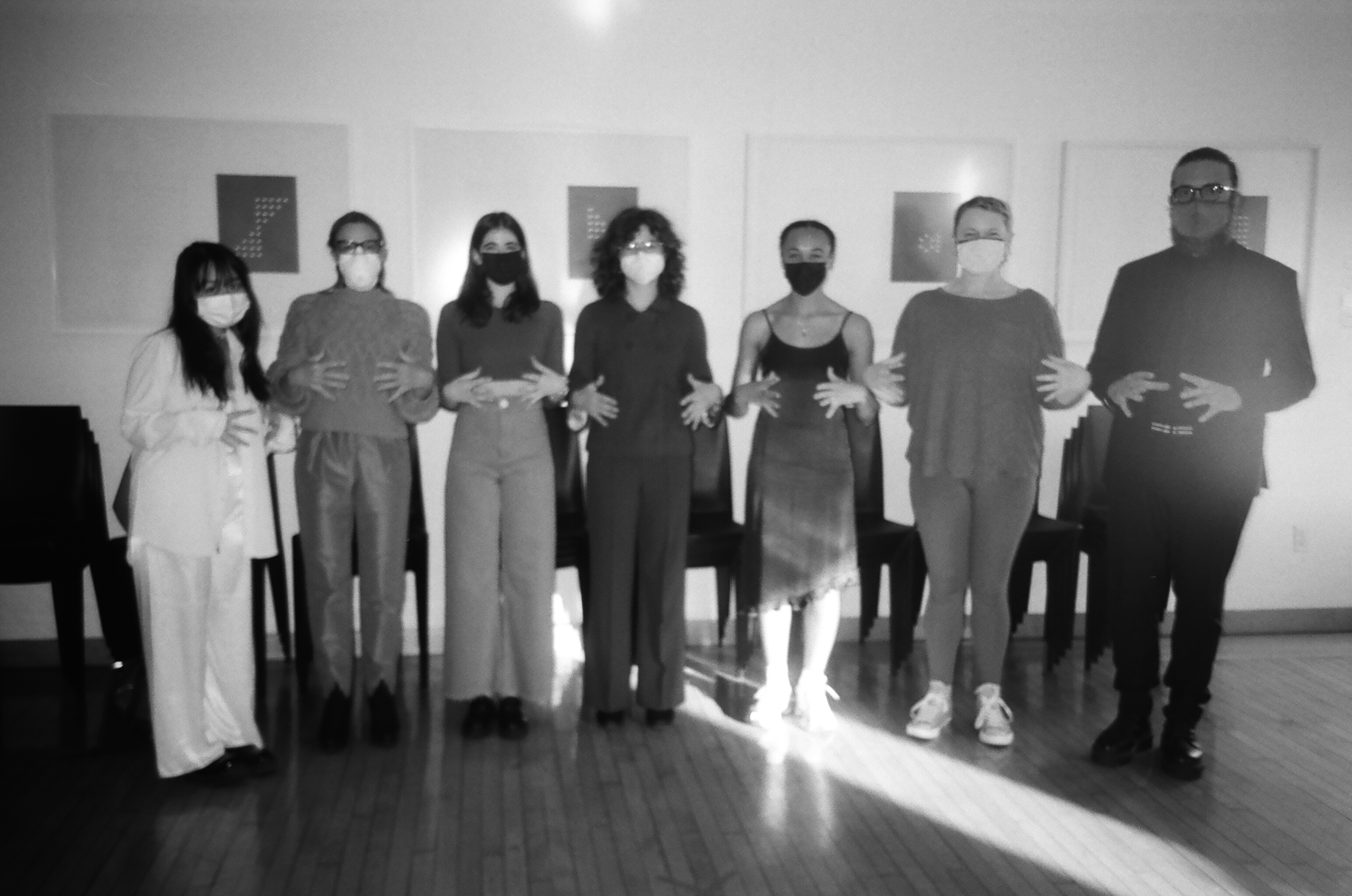 - Ari Nguyen, Melissa Grey, Bruna D'Amore Giampietro, Anna Mader, Jasmine Jensen, Hannah Ward, and David Morneau after 'Collective Sounding' at The New School.