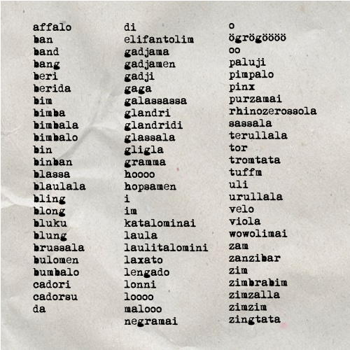 A poem by Hugo Ball in a false translation by Melissa Grey & David Morneau