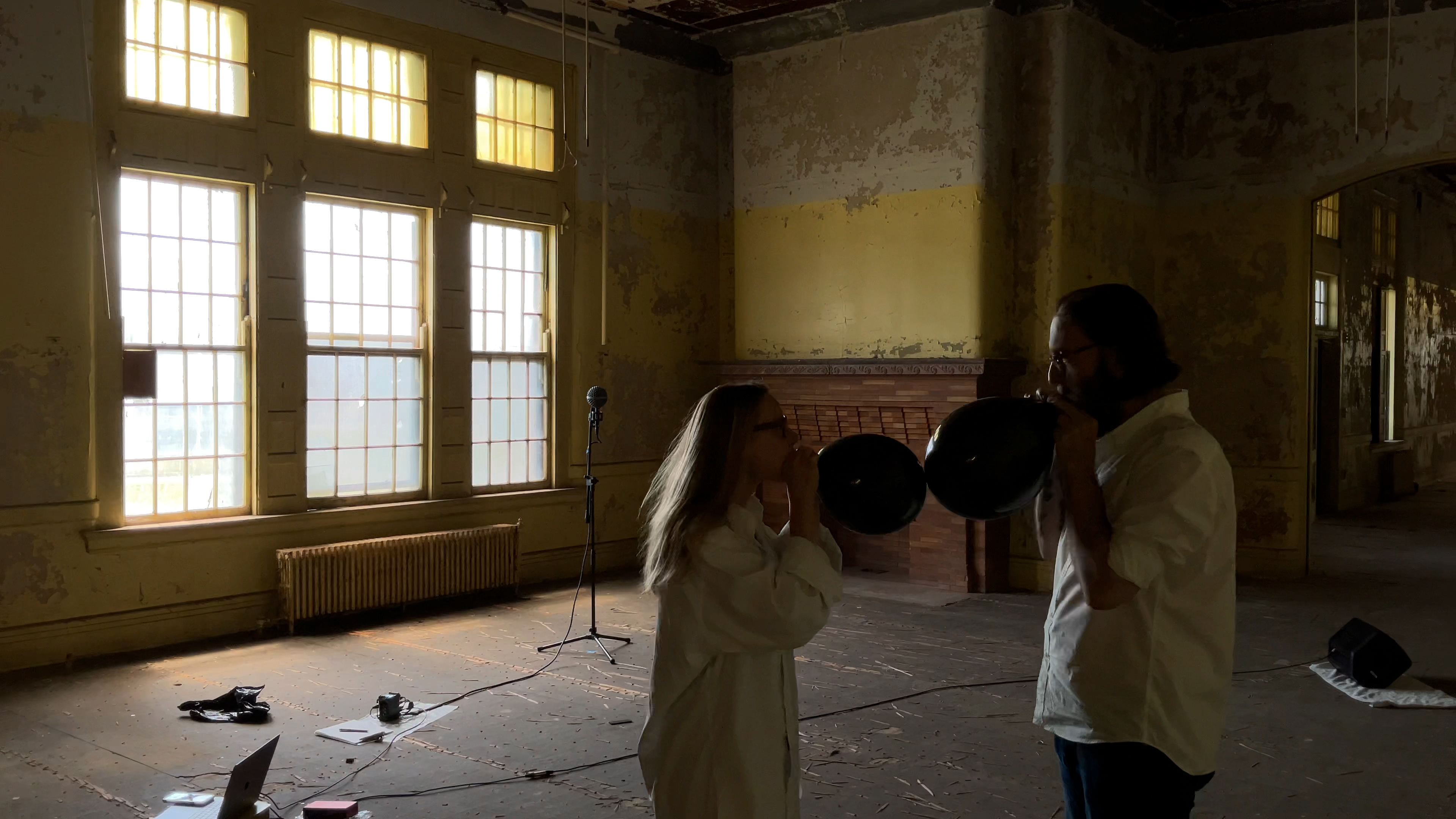 - Melissa Grey & David Morneau preparing balloons for impulse recordings in Female Ward H, Corridor (108) { time lapse still }